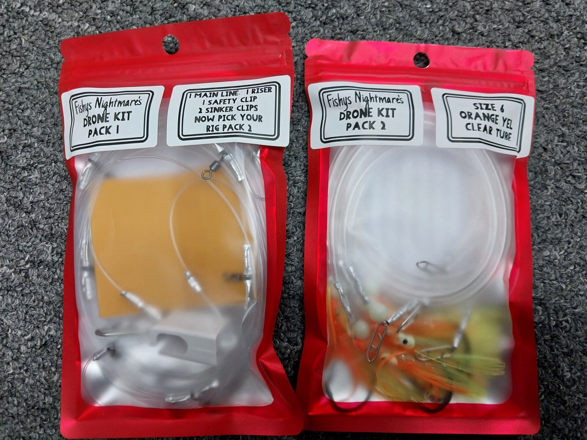 Drone Fishing Rig, size 6, Orange Yell, Clear tube